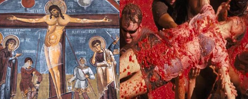 Filmin başlangıç sahnesi dışarıdan içeriye süzülen beyaz bir ışık ile beraber havalanan perde ile başlıyor. Bu sahnenin hemen ardından yukarı açıdan çekilmiş bir görüntü ile beraber her yeri kıpkırmızı olmuş insanları görüp algılamaya çalışıyoruz ve hemen sonrasında fark ediyoruz ki kırmızılıkların sebebi domates. Bu da İspanya’da 1945’te küçük bir domates kavgası ile başlayan daha sonrasında festival haline gelen ‘’La Tomatina’’ festivalidir. Filmin ilerleyen kısımlarında bir daha bu sahneye değinilmemiştir. Bu sebepten ötürü bu sahne Eva’nın bir rüyası mı? Kevin doğmadan öncesi mi? Yoksa Kevin’ın olayından sonra kendine geldiği bir senaryo mu? diye, bu konuda emin olamıyoruz. Bu üç soru işaretlerinden ilki hemen bu sahne sonrasında Eva’nın bir uykudan uyanmasından, ikincisi ve üçüncüsü ise ileriki sahnelerden anlayacağımız Eva’nın özgür ruhlu ve dünyayı gezmek isteyen bir kadın karakter olmasından ötürü oluşuyor. Bu sahne hakkında biraz daha detaya girdiğimizde yukarı açıdan çekilmiş olması ilahi bir bakış açısı kazandırmıştır. Eva karakterinin kollarını iki yana açmış şekilde duruşu İsa’nın çarmıha gerilişini hatırlatıyor. Bu da diğer vermiş olduğumuz üç ihtimali çürütüyor. İsa tarihte suçlu ilan edildi, teolojide ise kurban ilan edildi bu da bize bu sahnenin tamamen toplumun tüm suçu anne etiketi olan kadına attığını gösterir.